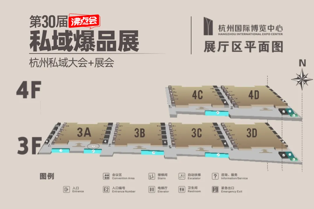 本次杭州私域展会将启用杭州国际博览中心三楼和四楼共5大展厅,总面积达5万平方米,分区明确,规划清晰。