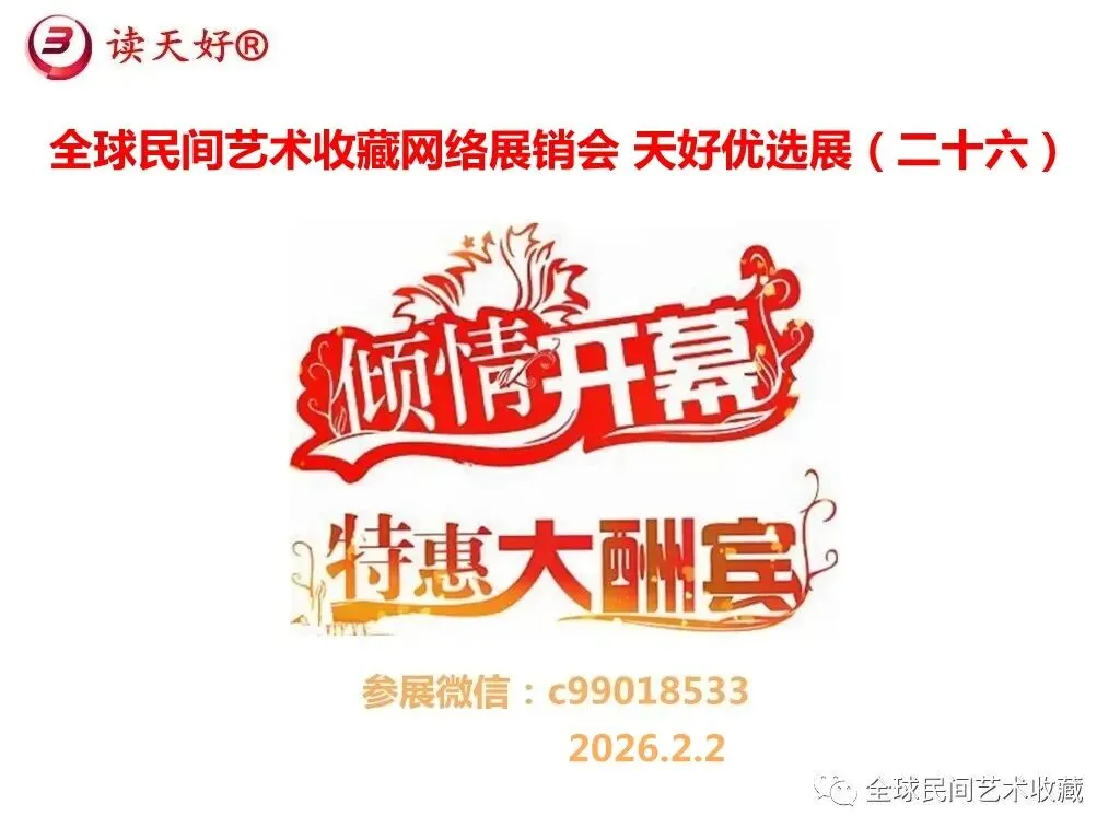 网络展销地址:《全球民间艺术收藏》《天好文化》,《天好展销馆》前二个微信公众号每期发布展讯,直接进《天好展销馆》购买。