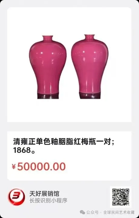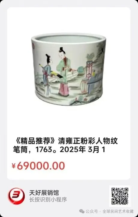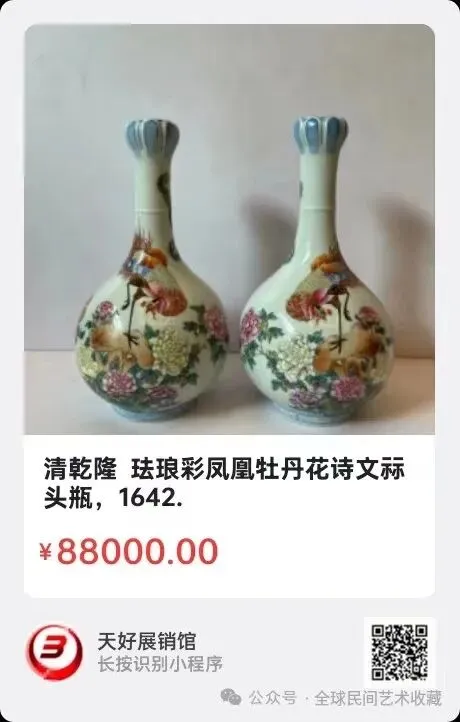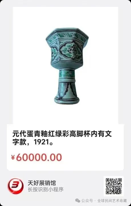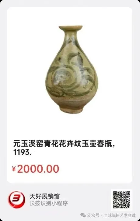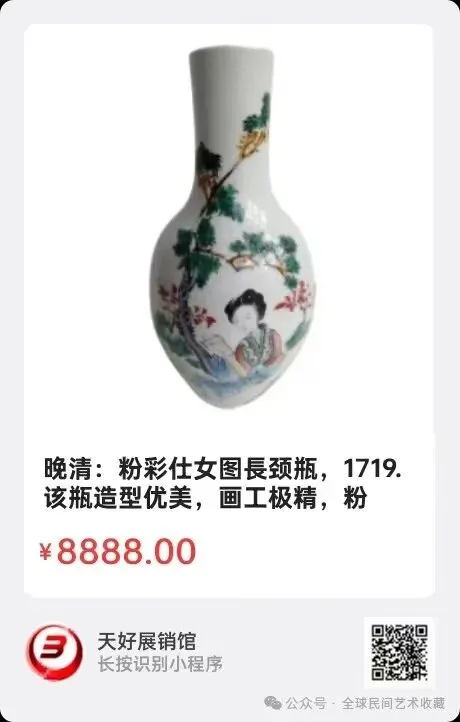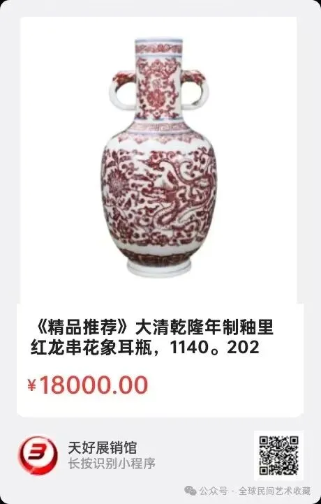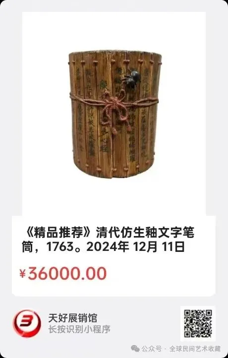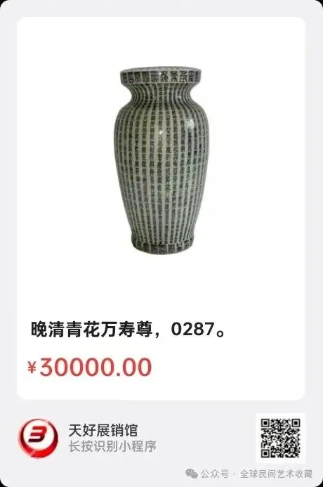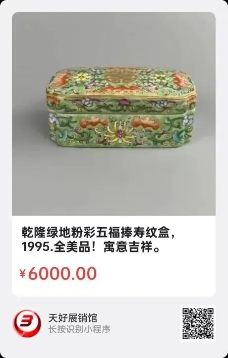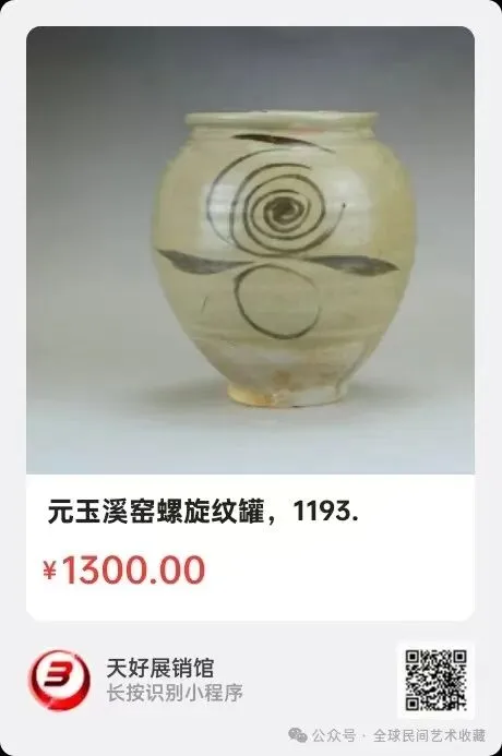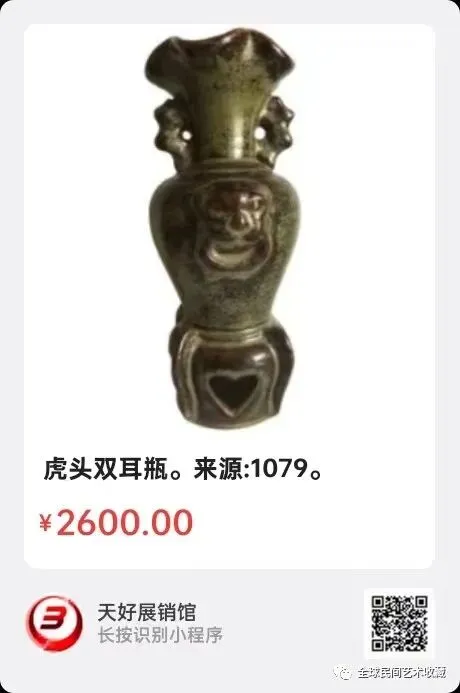 地点:《全球民间艺术收藏》《天好文化》,《天好展销馆》前二个微信公众号每期发布展讯,直接扫码进《天好展销馆》购买。