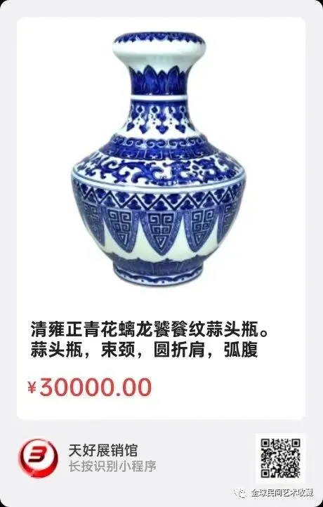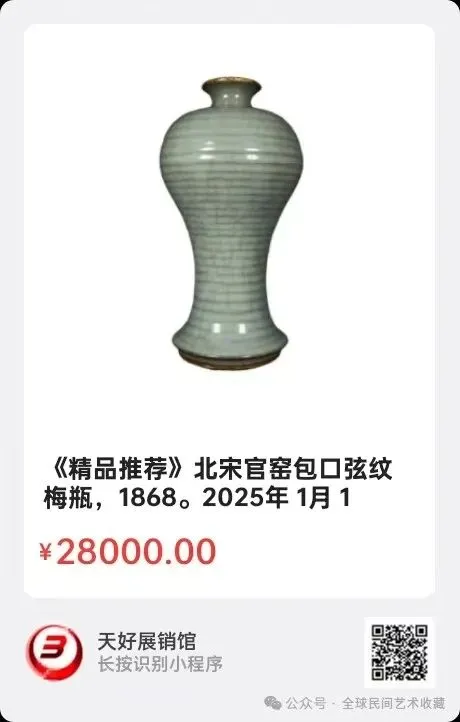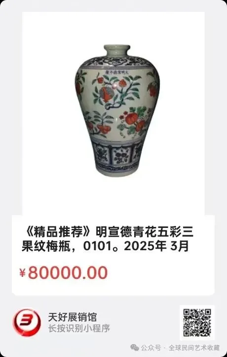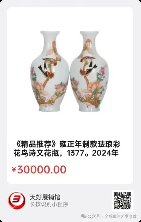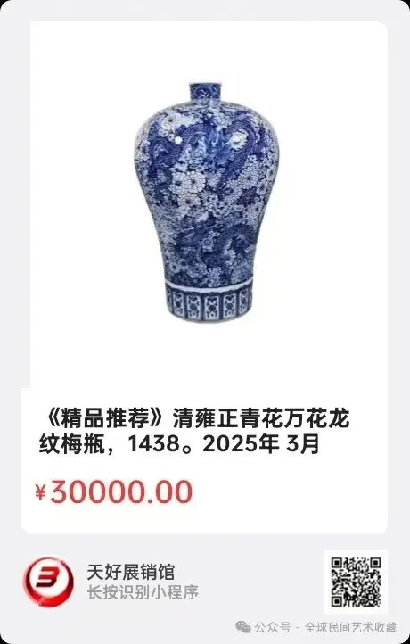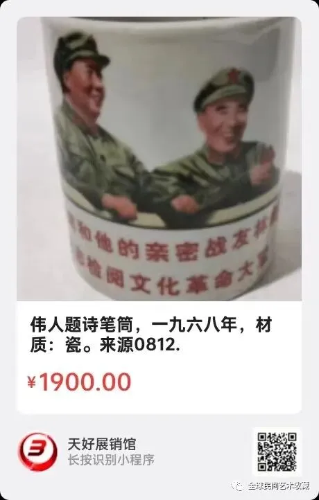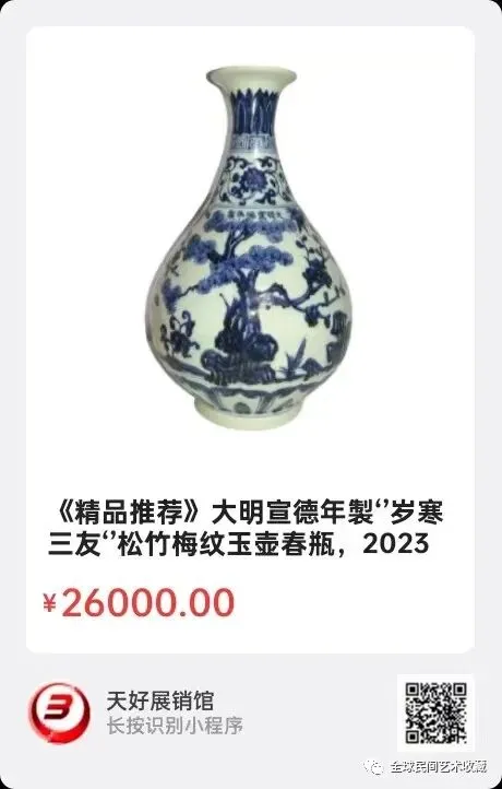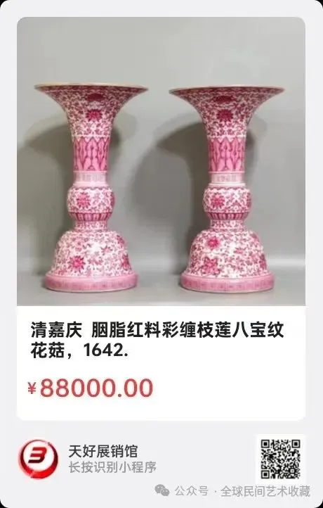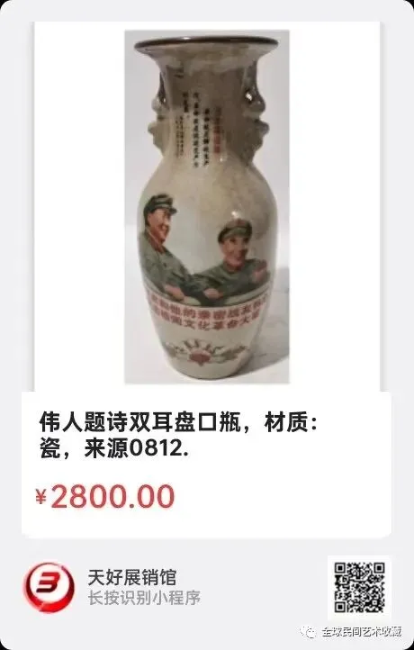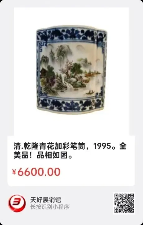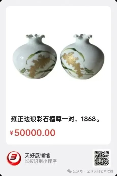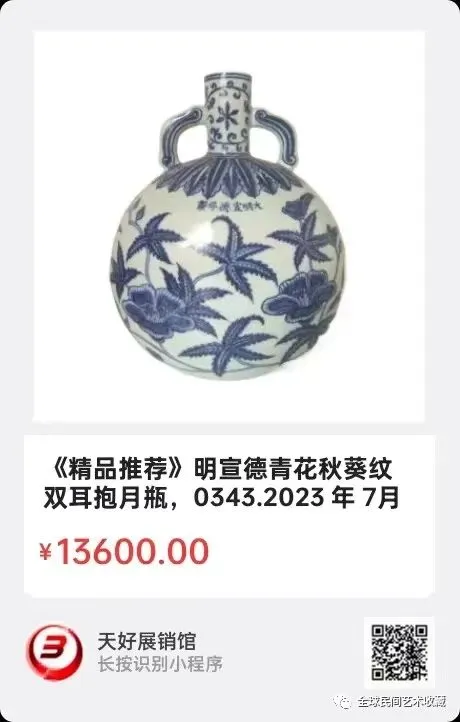 地点:《全球民间艺术收藏》《天好文化》,《天好展销馆》前二个微信公众号每期发布展讯,直接扫码进《天好展销馆》购买。
