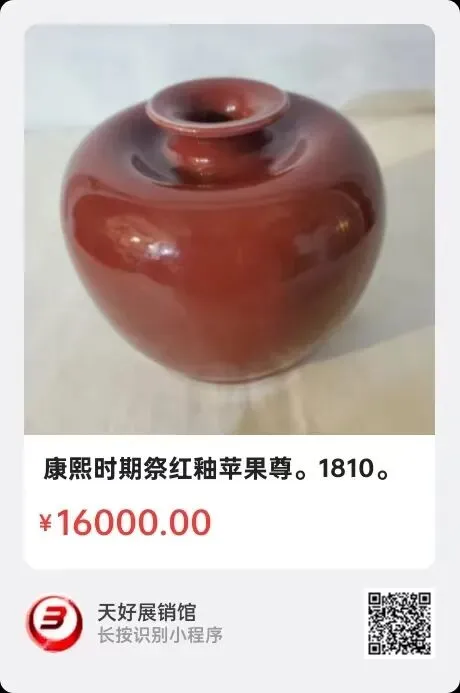 康熙豇豆红大红袍苹果尊,7cmx10.5cm。来源1878。