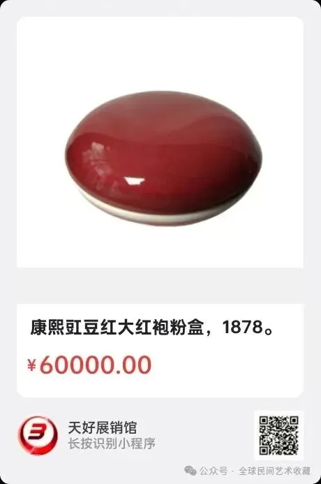 康熙豇豆红大红袍粉盒,4cmx9.5cm,来源1878。