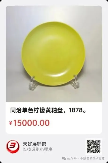 同治单色柠檬黄釉盘,20.4cmx4.3cm,来源1878。