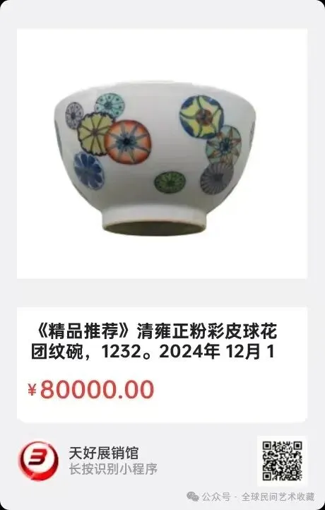 清雍正粉彩皮球花团纹碗,口径 11.2公分,底足径5.4公分,高度 6.2公分。2024年 12月 11日,经天好评审团评审,以7票优势荣登精品榜,获第155期天好海选精品。来源1232.V.