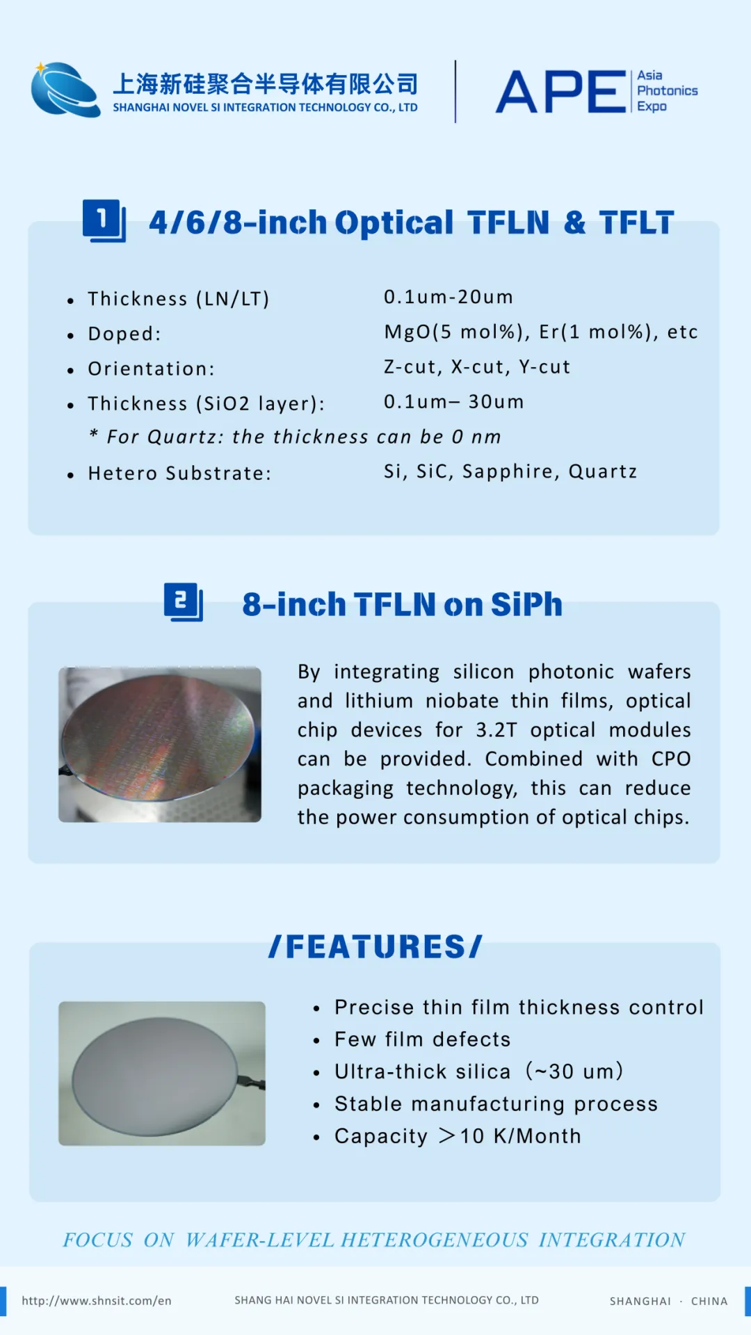 上海新硅聚合半导体有限公司专注于异质集成材料衬底的研发、生产及销售,面向光通信、量子技术和人工智能等重要领域,致力于为客户提供高性能异质集成材料解决方案。