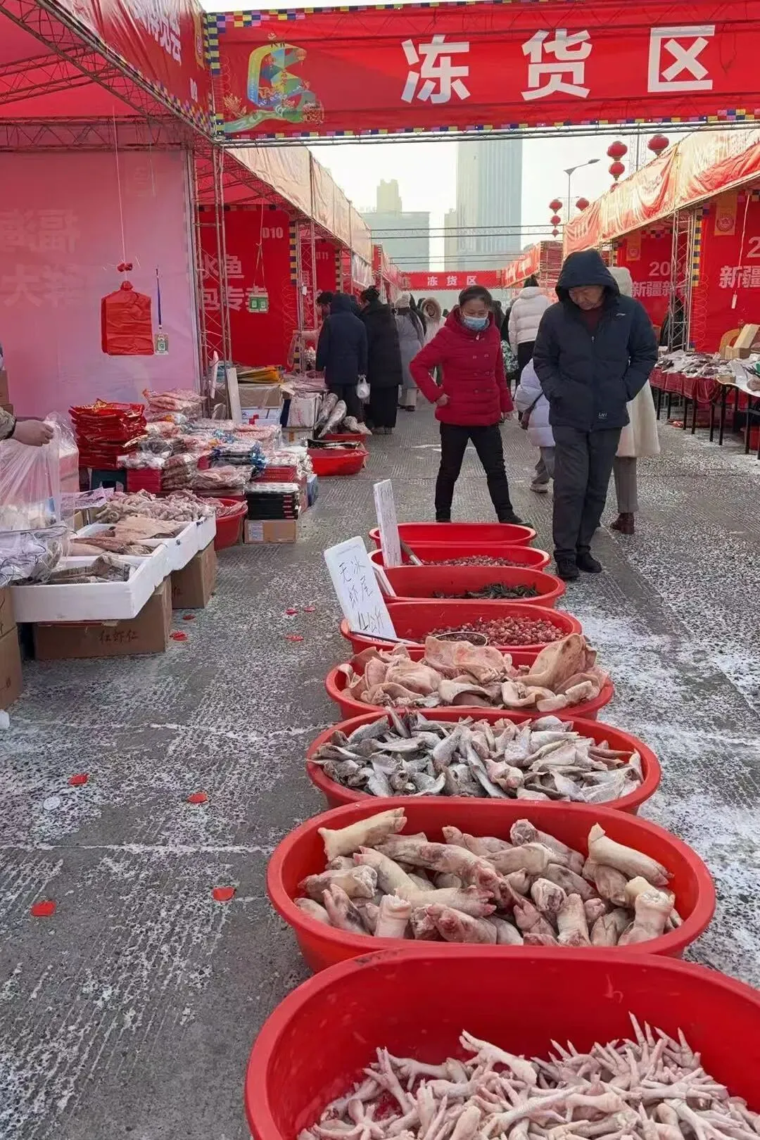 冻货区真有东北赶大集的感觉了!“乌鲁木齐”版本,太有意思了,烟火气满满~