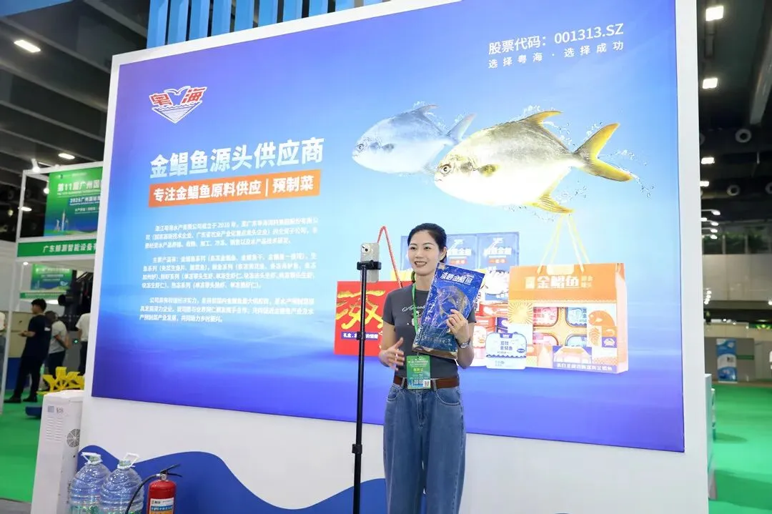 依托集团在水产饲料领域的扎实基础,粤海水产扎根海洋牧场,专注金鲳鱼养殖与加工,作为金鲳鱼源头供应商,积极践行大食物观,持续推进水产养殖与加工业务的发展。展会现场,粤海水产安排专业人员,为参观者介绍产品特点、电商平台、物流配送等信息,并与客户深入交流,寻求扩大销售渠道、拓展产品市场的机会。