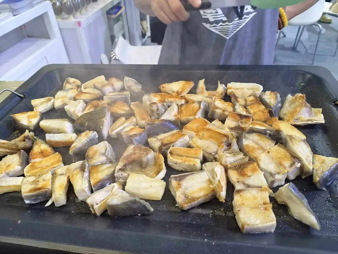 集团全资子公司粤海水产特别设置互动体验区,现场烹饪淡晒金鲳鱼干,并提供金鲳鱼罐头供参会者试吃,体验氛围热烈非凡。不少参会者品尝后,对产品研发、口味及品质表示认可;多位餐饮企业采购商称赞金鲳鱼口感鲜美、肉质鲜嫩且无腥味,认为适合作为餐厅菜品开发食材;行业专家也高度评价相关产品,肯定其在研发、口味创新及品质把控上的出色表现,认可粤海饲料为水产市场发展树立新标杆。