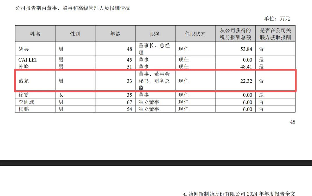 2024年报显示,戴龙担任公司董事、董事会秘书、证券事务代表、财务总监四个职务。虽打了“四份工”,但2024年的薪酬仅为22.32万元。