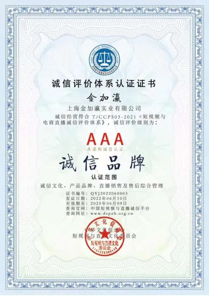 上海金加瀛是一家专业从事蚕丝被、蚕丝四件套、蚕丝贡枕、蚕丝毯等蚕丝类家居用品艺术设计和生产制造的企业,拥有完整、科学的质量管理体系,集产供销展馆与一体,有超过2万平方米的现代化生产厂房、专业的研发设计团队,有完整、科学的质量管理体系,是目前中国首屈一指有公信力有规模的蚕丝制品企业。2003年上海总工会聘请杨富珍、朱志豪、杨怀远等十一位全国老劳模为金加瀛质量监督员,目的打造国际一流品牌,同年起,金加瀛为当时国家领导国际政要定制蚕丝贡被。2004年通过全国电视购物平台,以匠心和诚信弘扬中华丝绸文化推广健康理念,得到千千万万用户的好评。因为蚕丝被行业是假冒伪劣重灾区,99%有问题,金加瀛承诺蚕丝被如果做不到表里一致有短斤缺两或降低等级有一床赔偿十万元,有一根假丝赔偿人民币一个亿,靠这个全中国唯一承诺红遍大江南北,走进千千万万以上家庭。2017年重金打造的国际蚕丝文化展示馆在上海和浙江政府支持下在浙江桐乡揭牌,展馆不仅展示中国千年的皇家蚕丝文化也展现了中国蚕丝在世界各地传播、延伸、发展,让蚕丝历史时尚让蚕丝文化鲜活是金加瀛人的使命,2018年金加瀛成为首届进口博览会衍生产品蚕丝制品唯一定制商。2019年创始人卢亚波被联合国妇女大会评为“全球杰出女性奖”金加瀛荣获目前中国家纺业唯一的联合国“国际行业影响力品牌奖””亚洲名优品牌奖”“中国质量先锋奖”。2020年、2021年、2022年3月15日连续被中国质量检验协会CAQI评为全国质量检验稳定合格产品,全国产品和服务质量诚信示范企业。近日又喜获“巴拿马太平洋万国(国际)博览会百货类金奖。一茧融天下一茧爱天下,金加瀛将继续以匠心、诚信、创新向世人证明中国有好产品中国人更诚信。