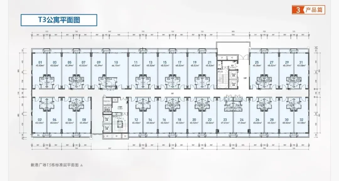 标准层户数:T3、T4为32户;T5为25户