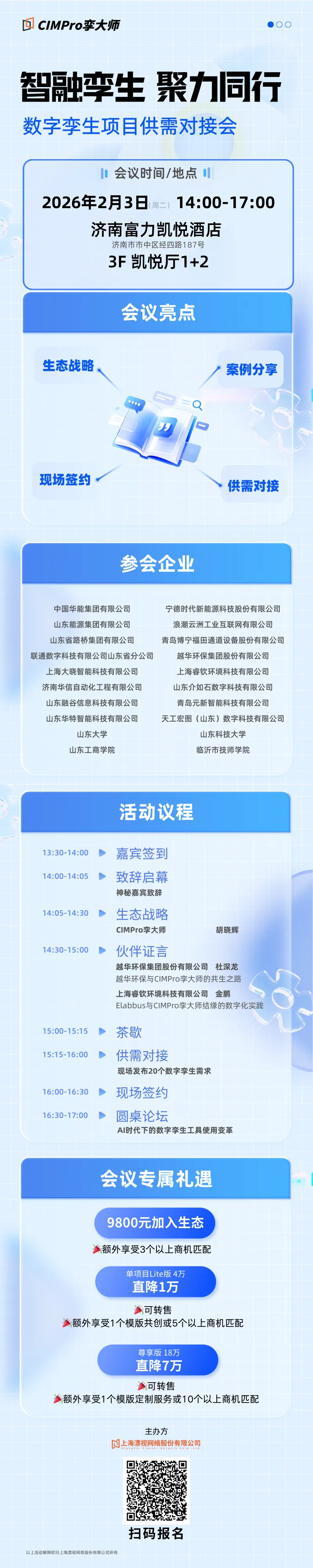 数字孪生技术正以前所未有的力量推动产业智能化升级,为推动技术与场景深度融合,助力企业精准对接项目资源,漂视将于2026年2月3日在济南举办“数字孪生项目供需对接会”。