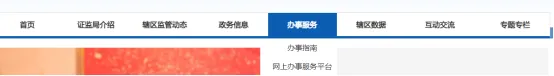 3.在辖区监管局网页选择“办事服务”项下的“办事指南”;
