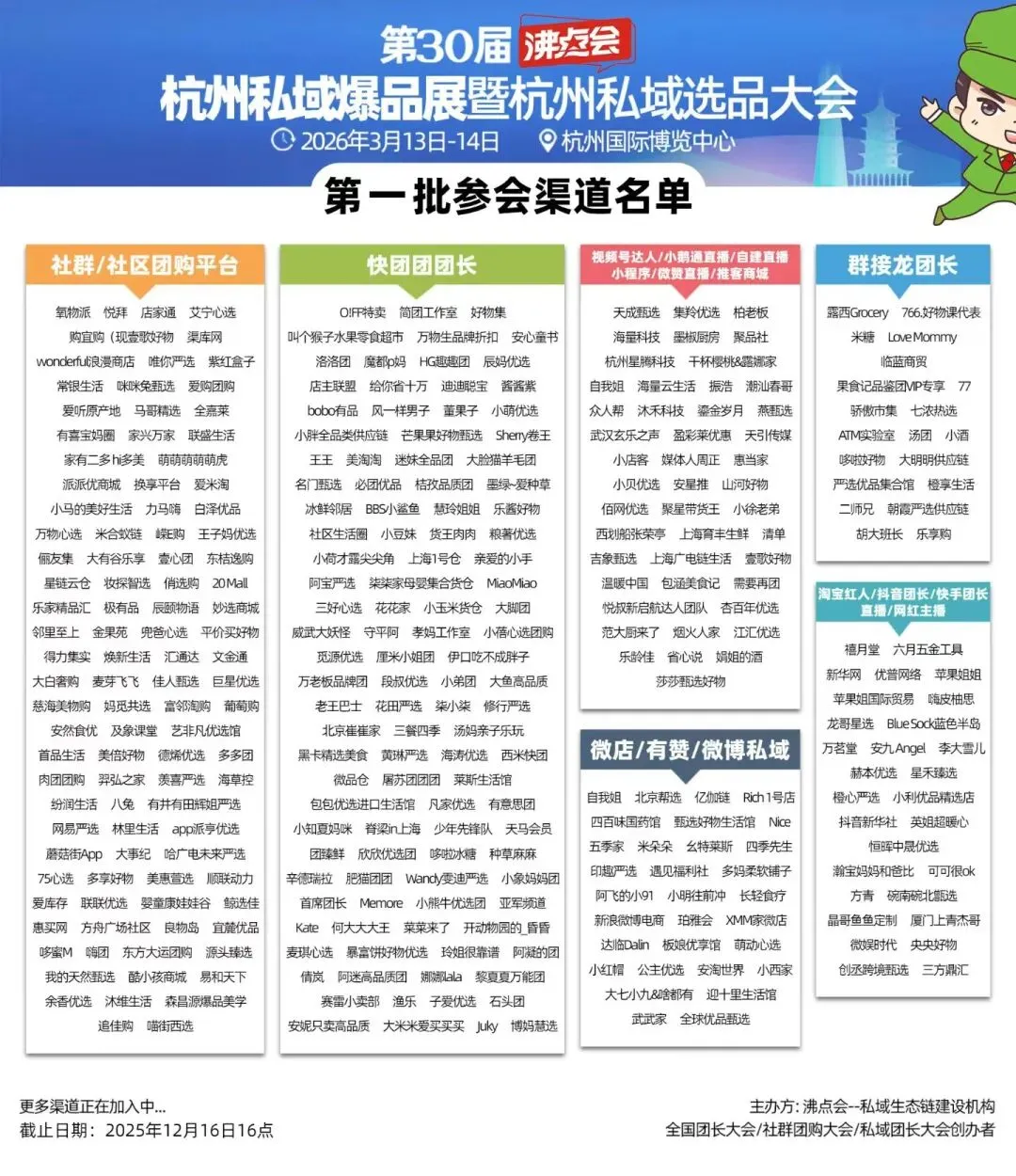 ✅ 资源汇聚98%私域头部渠道将到场选品,3月15日更特设“百强渠道联合选品会”,以闭门对接模式,助力展商与核心渠道深度洽谈。资源聚集力是沸点会的核心竞争力。