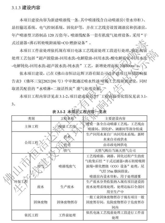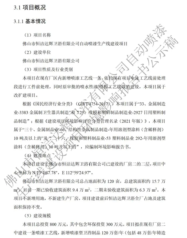 项目名称:佛山市恒洁达辉卫浴有限公司自动喷漆生产线建设项目