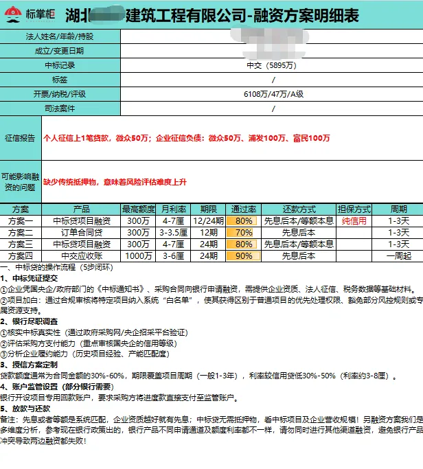 在本次融资方案设计中,核心思路并没有继续围绕开票、纳税等短期财务指标反复纠缠,而是将视角直接放在项目本身。以中标项目作为核心依据,重新构建融资逻辑,成为突破口。