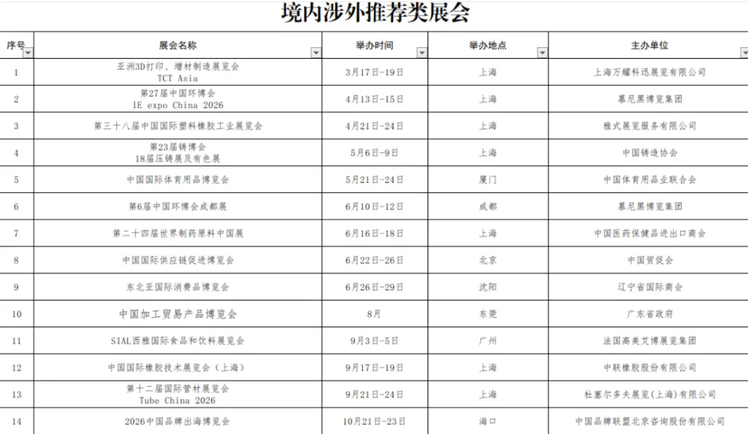 2026年展会计划共200个展会,除我厅直接组织的4个境内涉外重点类展会外,其余196个千企百展展会计划包括:境外展会178个,境内涉外推荐类展会14个、境内涉外跨境电商展会4个。