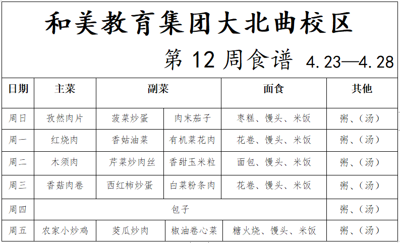 【校园食谱】“食”刻相伴—和美教育集团大北曲小学第12周食谱