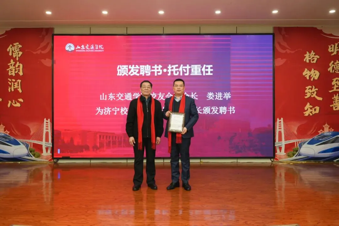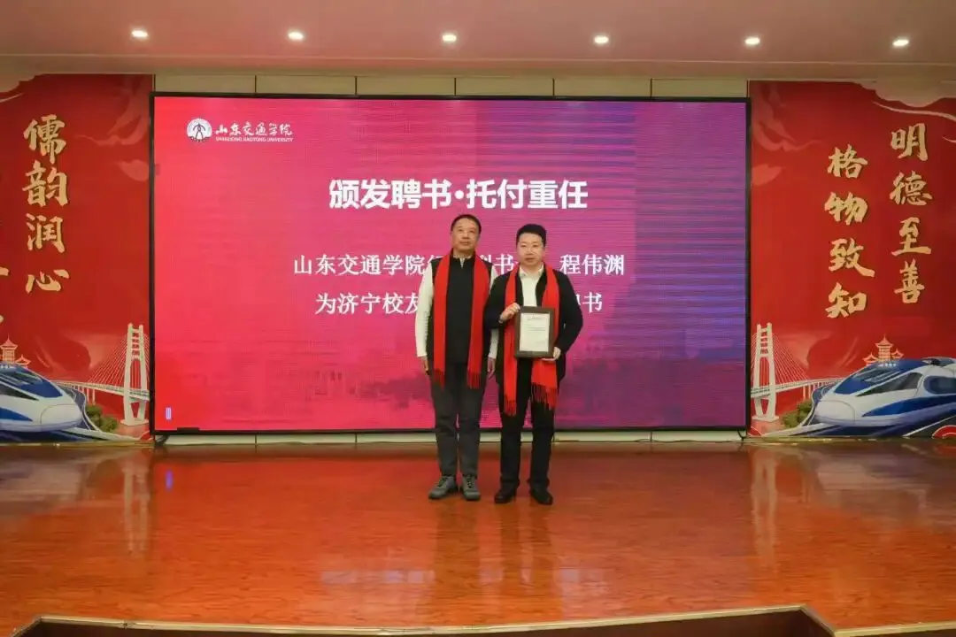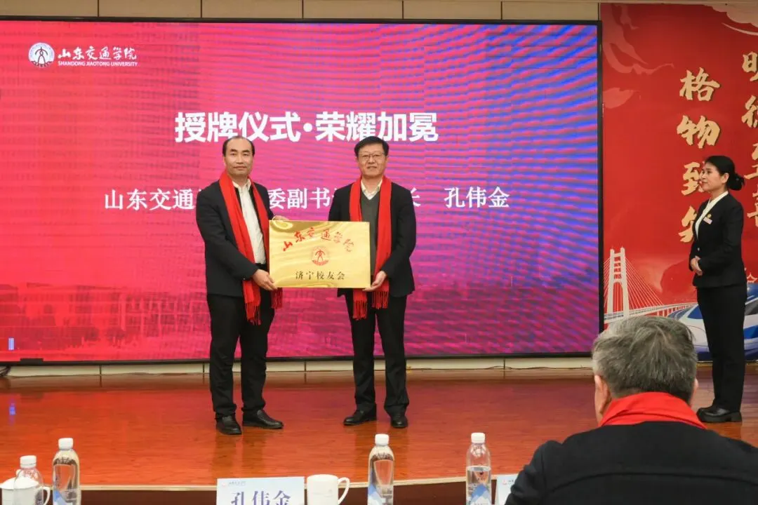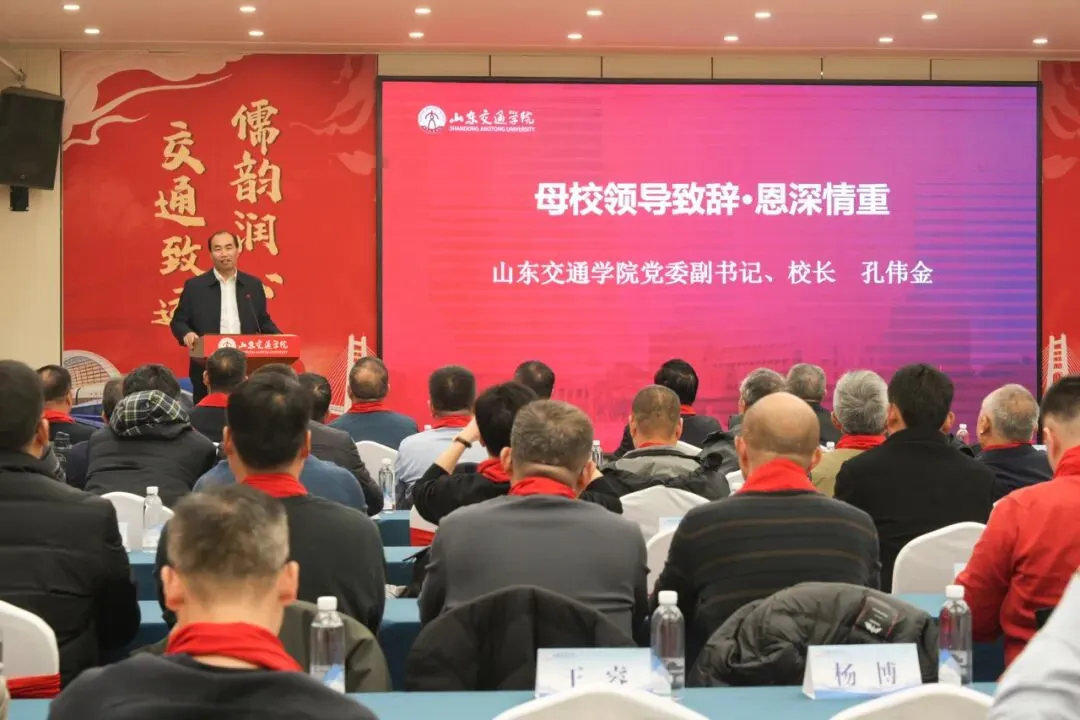 1月25日下午,山东交通学院济宁校友会换届大会暨合作发展推介会在济宁顺利召开。学校党委副书记、校长孔伟金,济宁市公路管理局原局长、曲阜市原市长、济宁学院原副院长王庆成,济宁市交通运输局原书记、局长李新念,济宁市交通运输局原书记、局长,孔子研究院原书记李大友,汽78级校友、山东省体育局原副局长徐大义,学校校友会副会长娄进举,青岛校友会副会长吴章春,上海校友会副秘书长刘建房,泰安校友会秘书长于东,路桥75级校友、济宁市公路工程总公司原总经理张伟,济宁校友会原秘书长、路79校友李继锋等济宁市各区县的校友代表,山东天意机械股份有限公司,以及济宁交运集团、济宁永昌路桥集团、山东鹏程路桥集团等合作单位代表100余人参加大会。