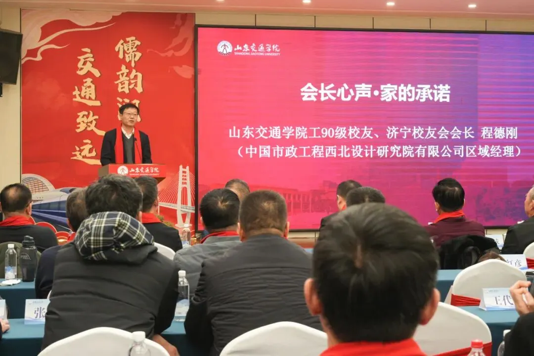 程德刚代表济宁校友会作表态发言,他指出,济宁校友会将持续汇聚济宁校友力量,主动扛起时代赋予的责任,继续主动搭建资源共享的协作平台、经验互鉴的交流桥梁、服务校友的暖心港湾,致力于为母校提升声誉、为校友赋能成长、为产业创造价值。