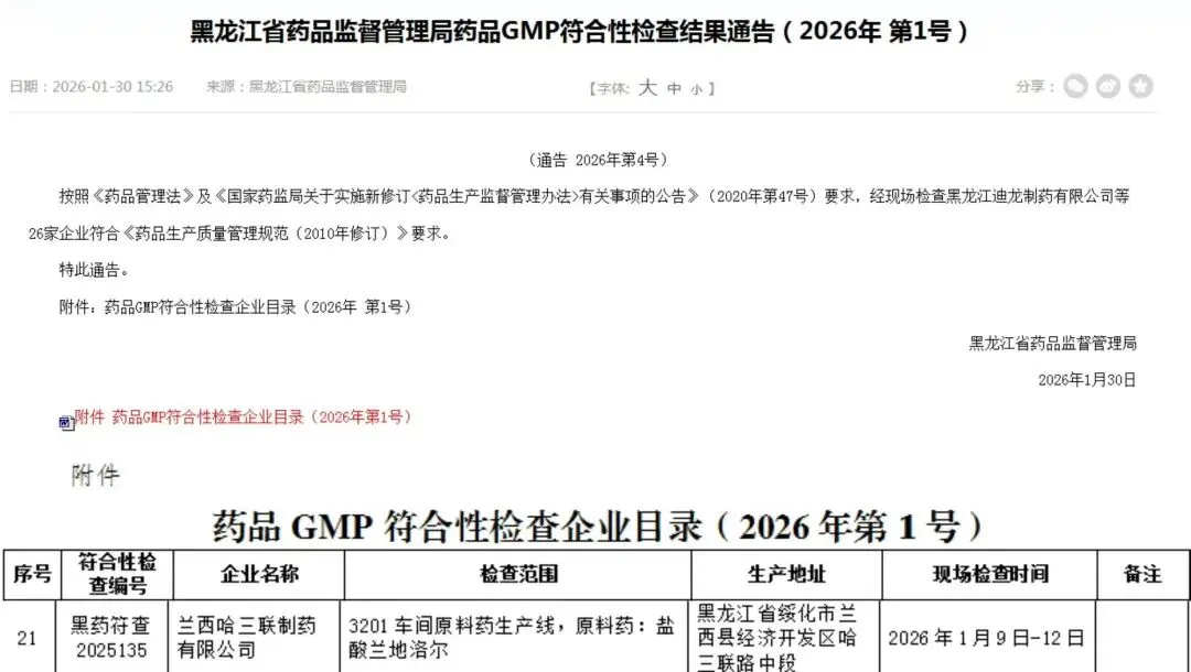 近日,哈三联全资子公司兰西哈三联制药原料药盐酸兰地洛尔生产线顺利通过药品生产质量管理规范(GMP)符合性检查。