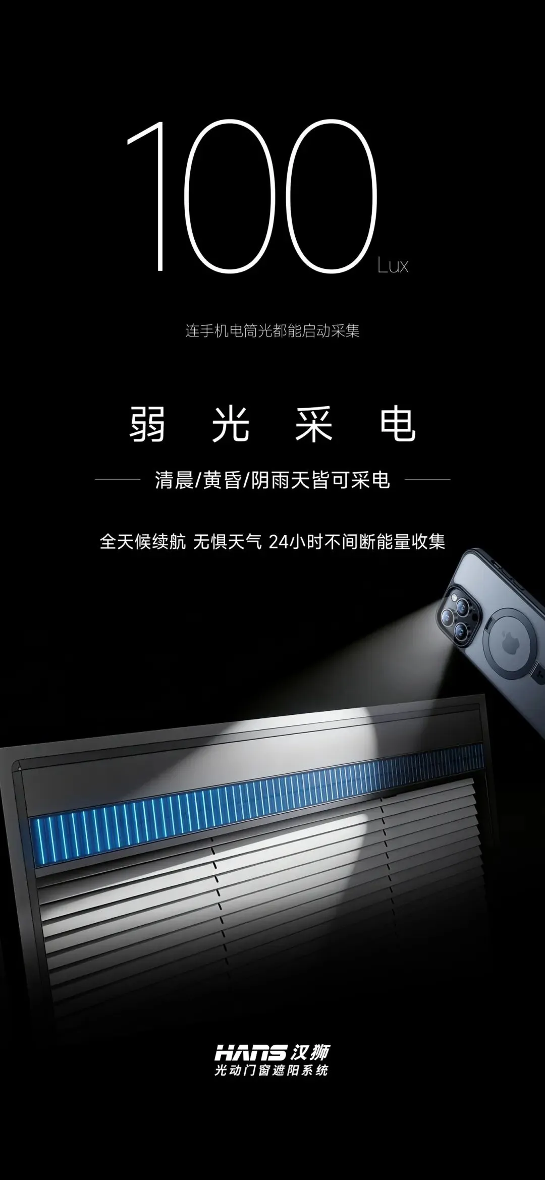 •采用弱光采电技术: