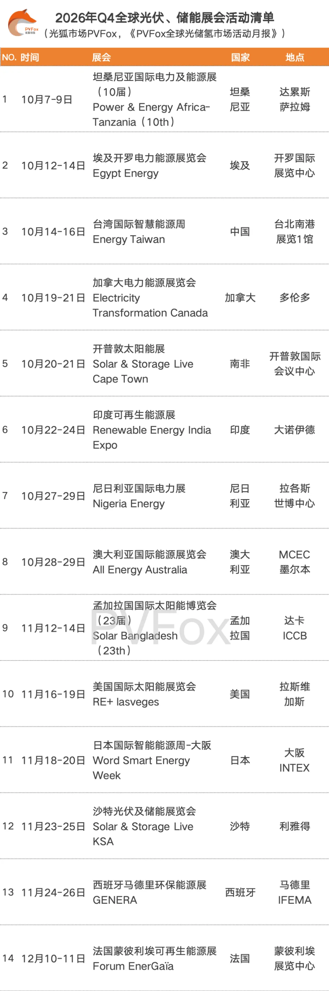 全球光伏与储能市场正经历深刻变革,光狐市场PVFox持续追踪产业动态,现已正式发布《2026全球光伏、储能展会活动前瞻》。