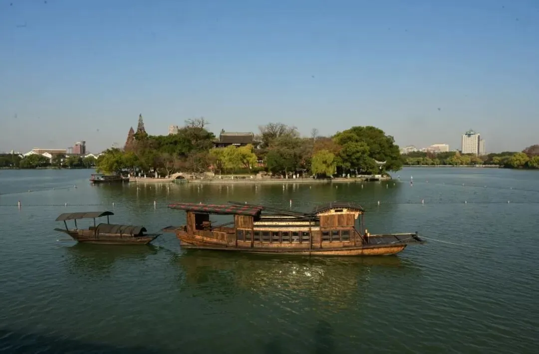 中共一大最后一次会议在嘉兴南湖的一条游船上举行。图为2020年后嘉兴南湖上的红船。