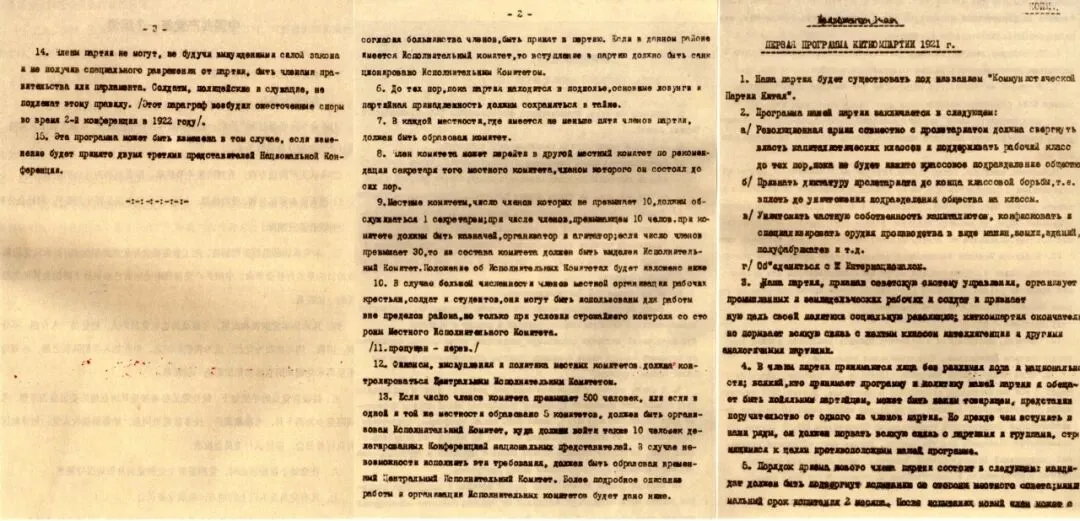 党的一大通过了《中国共产党第一个纲领》和《中国共产党第一个决议》。图为纲领的俄文本。