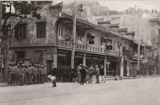 1925年5月30日,在中国共产党领导和发动下,上海工人和学生举行街头宣传和示威游行,公共租界英国巡捕在南京路上突然开枪,打死13人,伤者无数,造成震惊全国的五卅惨案。图为巡捕开枪后的惨案现场。