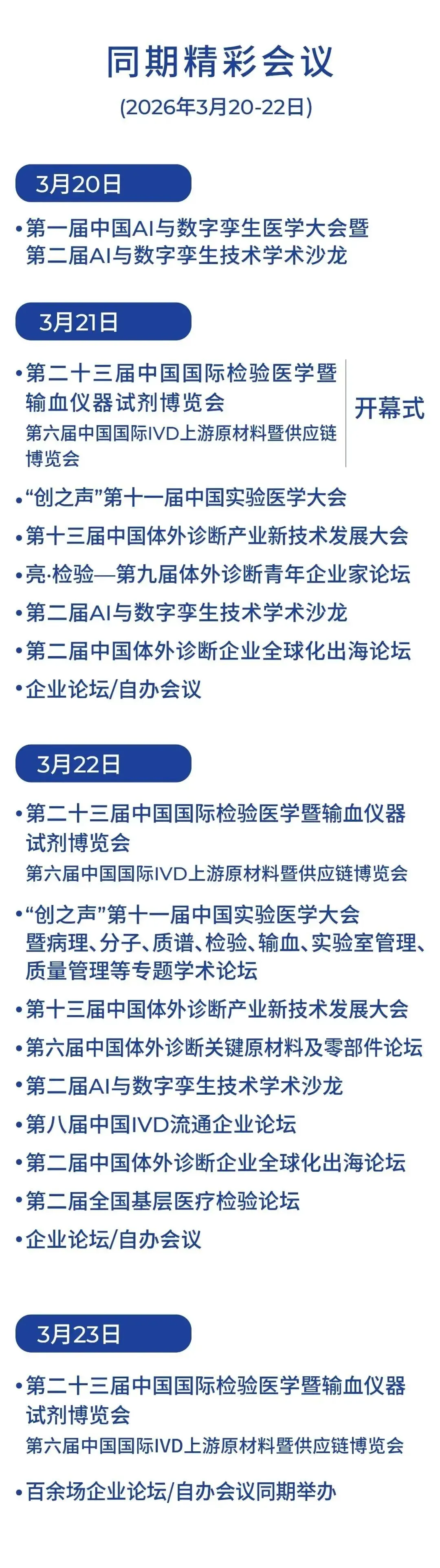 第二十三届中国国际检验医学暨输血仪器试剂博览会(CACLP)、第六届中国国际IVD上游原材料暨供应链博览会(CISCE)将于2026年3月21日-23日在厦门国际博览中心隆重举行。