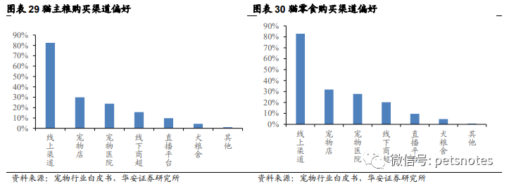 从渠道端来看,线上平台已成为宠物主购买宠物食品的主要渠道。宠物食品消费者高频、刚需以及要求便利性的购物习惯与电子商务的特点高度契合。