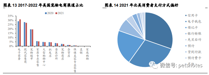 疫情期间电子商务的加速发展推动了消费者在线购物习惯的形成,美国电商渠道销售份额持续提升,部分线下专业宠物渠道呈现与电子商务融合趋势。