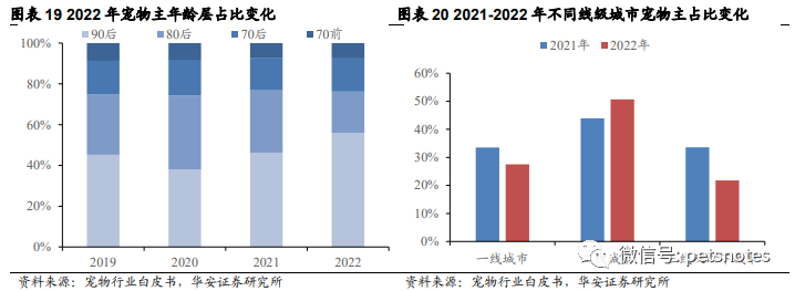 宠物主年龄层分布变化与单身经济、银发经济发展趋势相契合,消费意愿和消费能力较强的两类养宠群体有望推动宠物行业持续扩容。