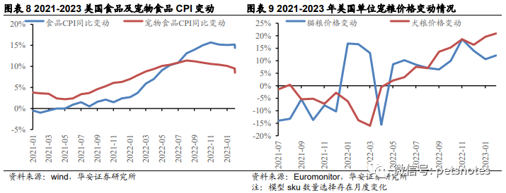 在供应链问题和超预期通货膨胀影响下,美国宠物产品成本及销售价格持续提升。根据美国劳工统计局(BLS)数据,2023年3月美国宠物食品及用品CPI同比上涨10.3%,其中宠物食品同比上涨14.4%,远高于整体食品8.5%的同比上涨。