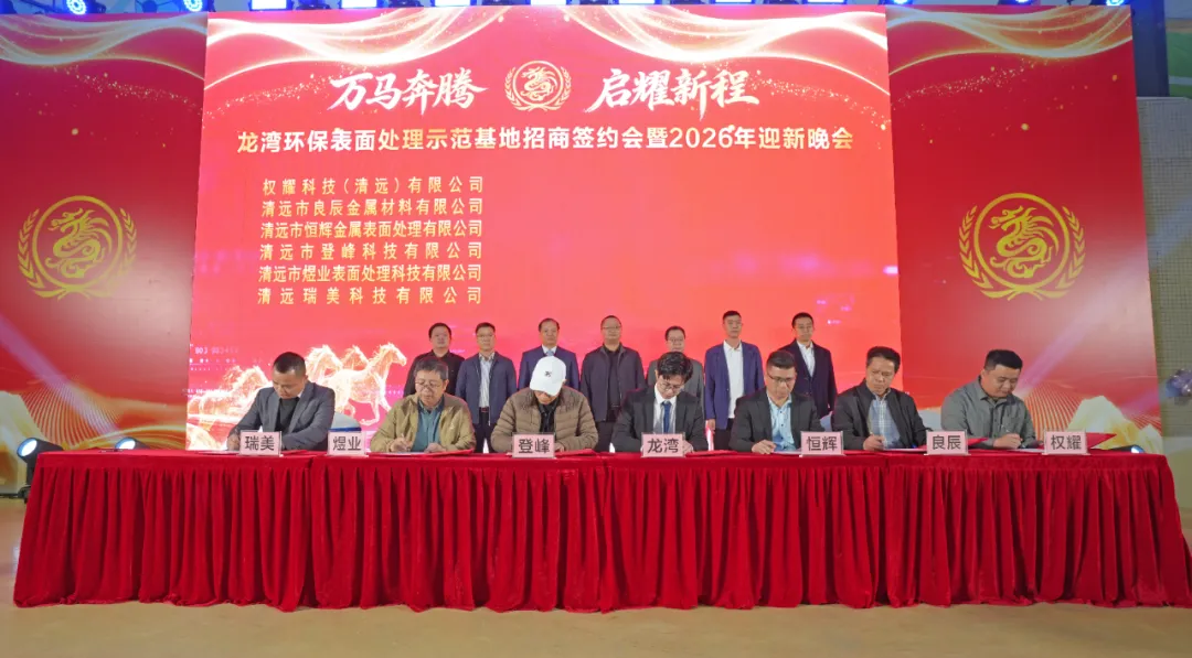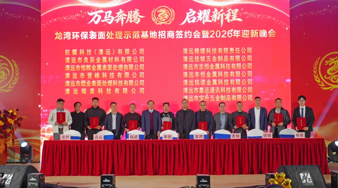 岁序更替,华章日新。清远市龙湾环保表面处理示范基地招商签约会暨2026年迎新晚会于2026年1月31日圆满举办,政府领导、合作企业家、园区同仁齐聚一堂,共话合作、共庆新春、共启新程!