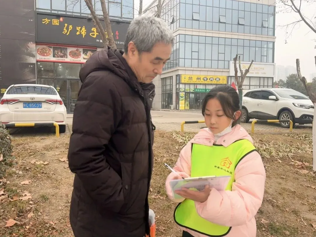在社区周边的主次干道、休闲广场,小小议事官们化身文明传播的小使者,礼貌地向过往的居民、行人发起采访邀请。“叔叔您好,请问对烟花爆竹禁燃禁放怎么看?”“阿姨,您平时出行觉得哪些路段的文明停车需要改进呢?”“爷爷奶奶,您对我们小区的儿童游乐区有什么好的建议吗?”稚嫩的嗓音、真诚的提问,吸引了众多路人驻足回应,大家纷纷放下脚步,耐心解答孩子们的问题,结合自身生活体验,围绕社区环境整治、文明风尚培育、健康服务普及、儿童友好设施完善等方面,提出了诸多朴实又实用的意见与建议。面对路人的热情分享,小小议事官们仔细聆听、认真记录,将每一条建议都工整地写在采访本上,遇到不懂的问题还会主动追问,现场氛围温馨又热烈。