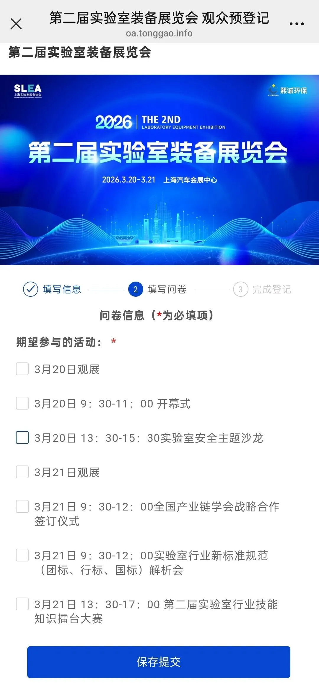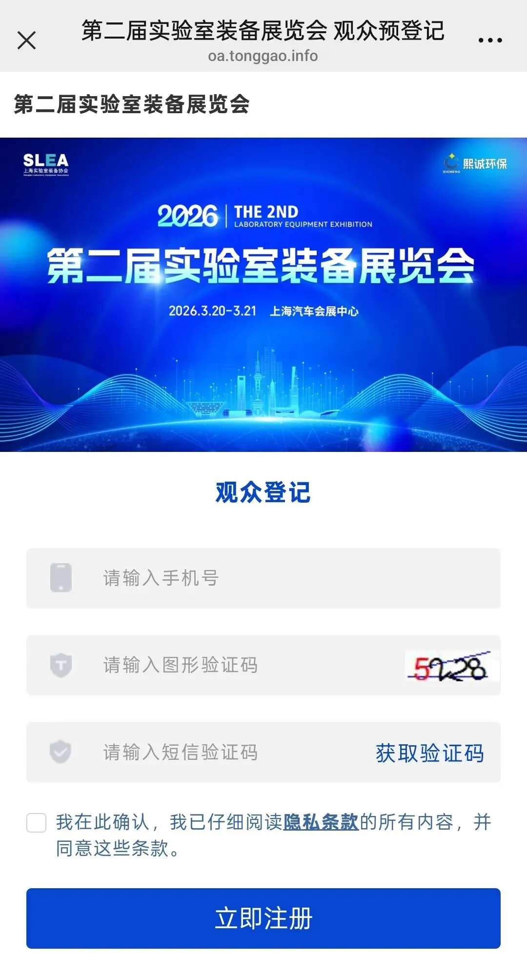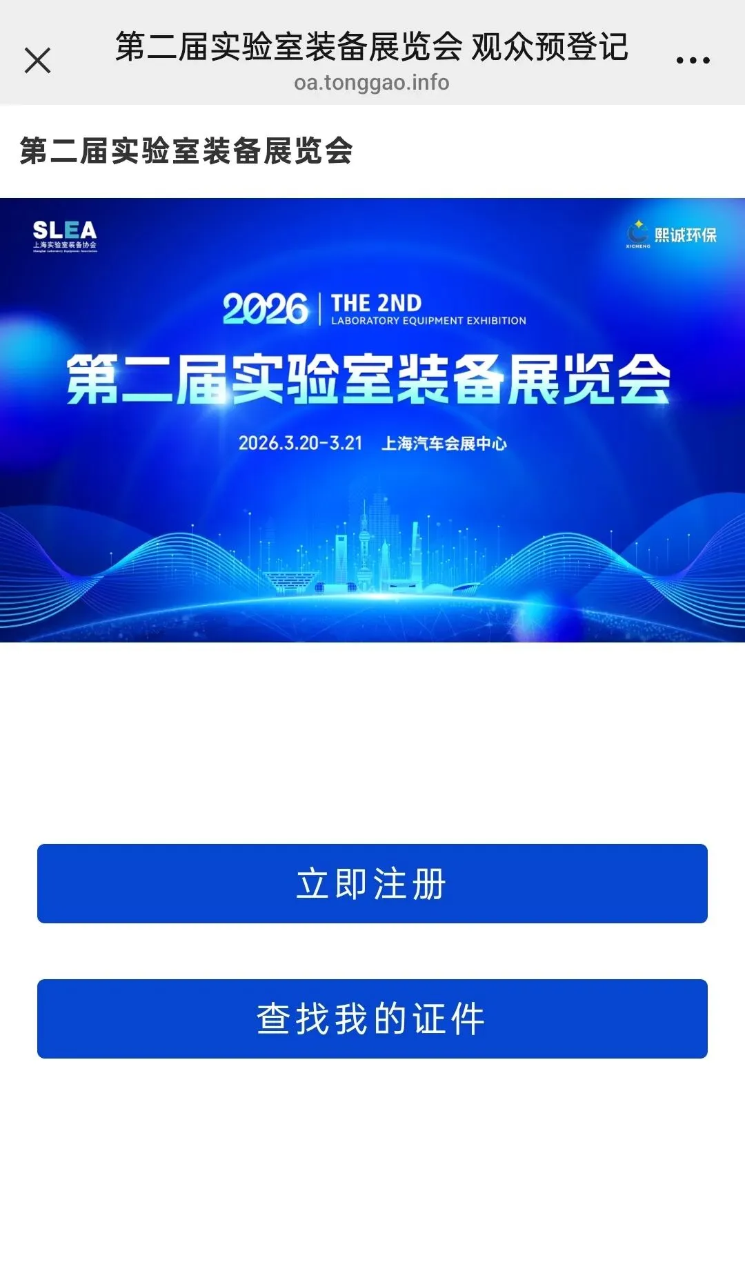 进入上海实验室装备协会官方网站(http://www.slea.com.cn/home),点击首页图片进行观展报名。
