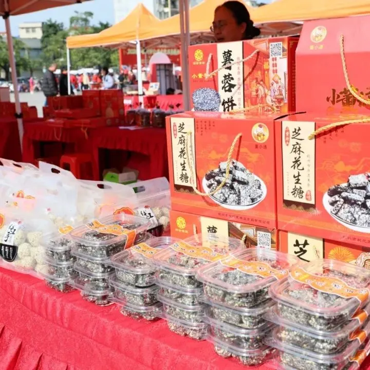 活动现场,近二十项非遗制作技艺汇聚一堂,从福旺茶点到张黄月饼,从灵山大粽到小董麻通,琳琅满目的地方特色美食与年货,让市民在采购中感受到浓厚的乡土情怀与年节氛围。许多市民在选购包装精美的鳖鸡汤、泉水豆腐花等特色产品的同时,也满载腊味、茶点等传统年货而归,纷纷表示“这些地道的钦州味道,一次就能买齐!”