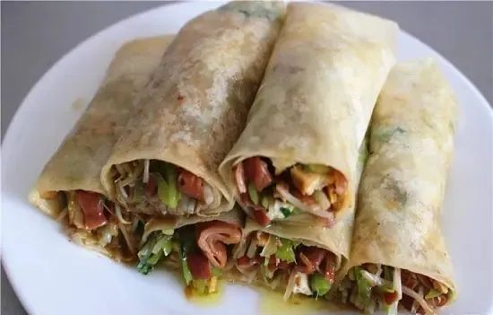 糖酥饼、五香豆、胡萝卜蛋饼、炝锅菜叶面