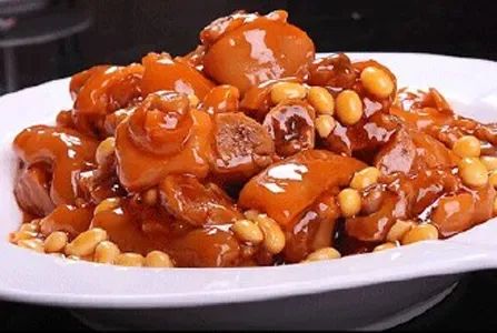 家常炖豆腐、咖喱土豆牛肉、猪蹄卷、燕麦玉米粥