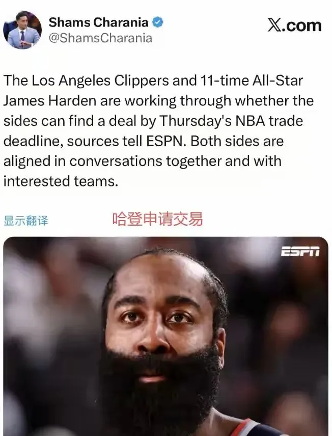 NBA重磅消息传来,快船队的哈登正式申请交易,距离交易截止日还有3天。