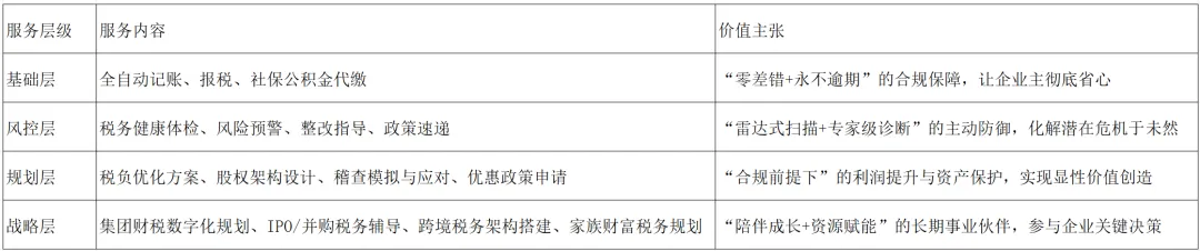 在效率问题解决后,竞争的关键转向价值创造。代账机构必须打破“记账报税”的单一形象,将服务重构为清晰的、可分层、可定价的价值模块,使自身从企业的“后台成本负担”转型为“前台价值伙伴”。
