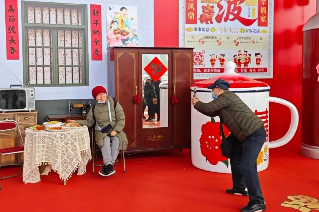 3000平方米的“添福广场”吸引众多家庭驻足,市民王先生带着孩子一边找“福”字一边乐呵呵地说:“讨个吉利,添福迎财!”非遗糖画、面塑展演区围满好奇的观众,不少孩子亲手尝试吹糖人;国潮拍照区、怀旧场景还原区也人气高涨,快门声与欢笑声此起彼伏。