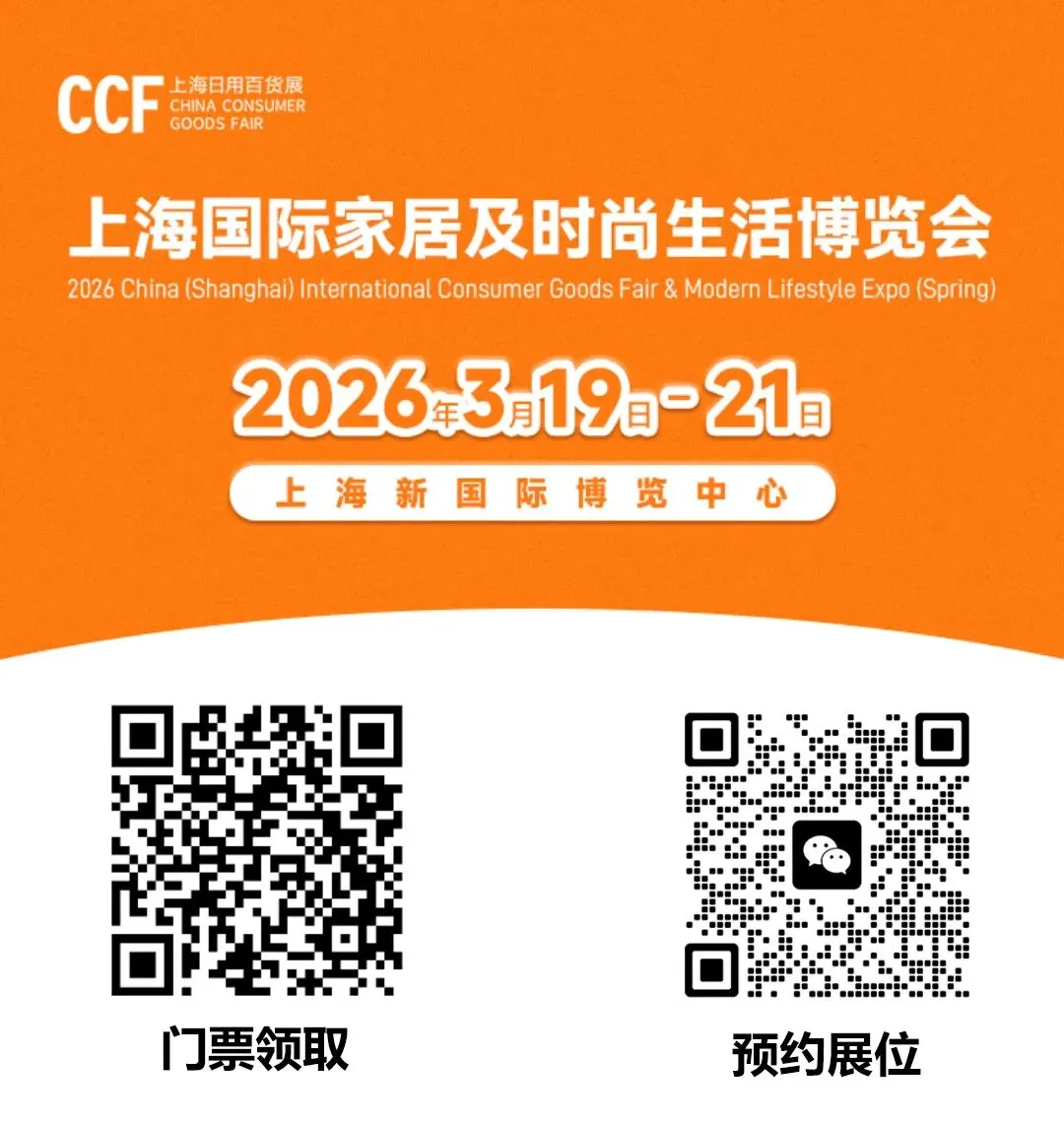 扫描下方二维码,添加微信,免费领取30元CCF入场门票。2026年3月19-21日,上海新国际博览中心,CCF2026上海家居生活博览会不见不散。