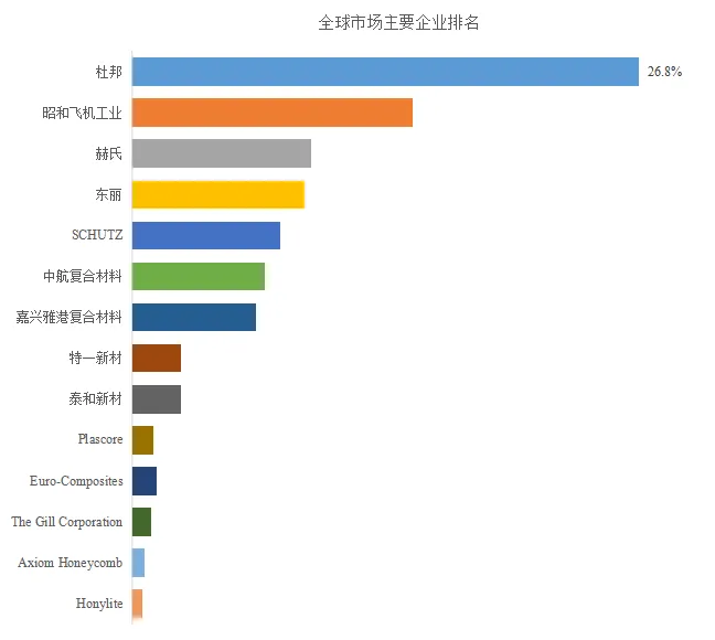 根据QYResearch头部企业研究中心调研,全球范围内芳纶纸蜂窝芯生产商主要包括杜邦、昭和飞机工业、赫氏、东丽、SCHUTZ、中航复合材料、嘉兴雅港复合材料、特一新材、泰和新材和Plascore等。2025年,全球前十强厂商占有大约87%的市场份额。