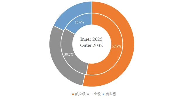 就产品类型而言,目前航空级是最主要的细分产品,占据大约52.9%的份额。