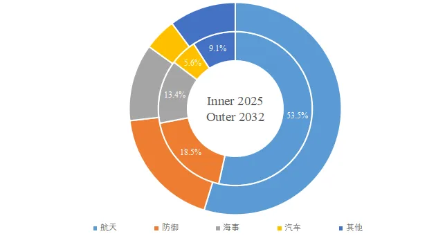 就产品应用而言,目前航天是最主要的需求来源,占据大约53.5%的份额。