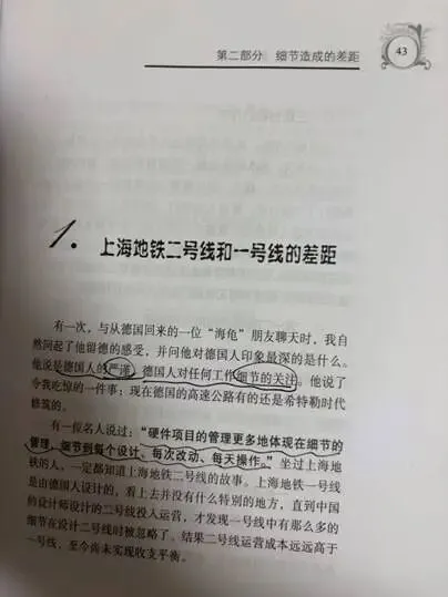 1、上海地铁一号线是由德国人设计,二号线是由中国设计师设计。二号线设计中:缺少三级台阶,在大雨中被淹;缺少出口转弯,增加电费消耗;缺少装饰线,增加专人提醒。狭窄的站台宽度,让人难受和拥挤;省掉站台门,乘客容易掉下站台。中国人绝不缺乏聪明才智,缺的是对精细的执着。认真做事只是把事情做对,用心做事才能把事情做好。
