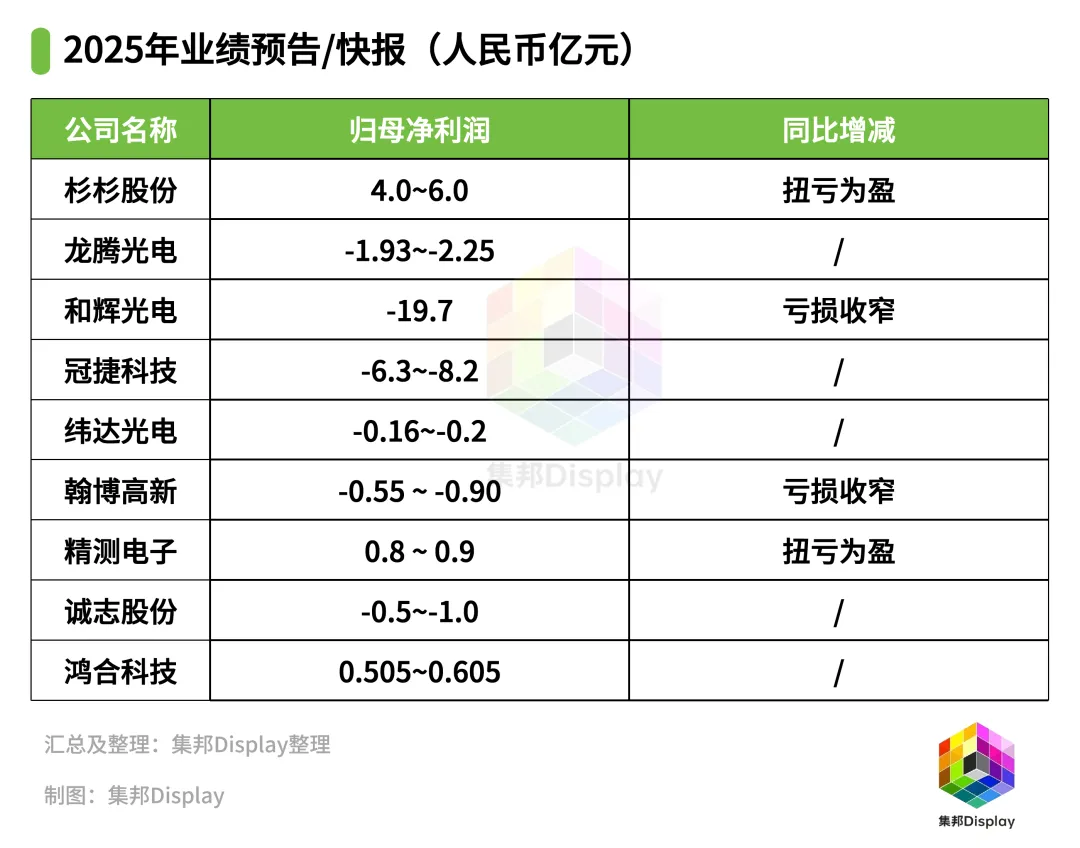 2025年,龙腾光电预计实现归属于母公司所有者的净利润-2.25亿元至-1.93亿元;预计实现归属于母公司所有者扣除非经常性损益后的净利润-2.3亿元至-1.98亿元。